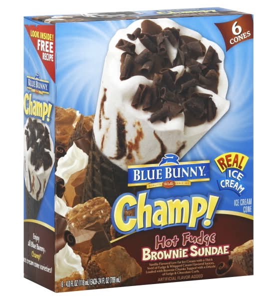 Blue Bunny Ice Cream Cones, Hot Fudge Brownie Sundae (4 fl oz, 6 ct)