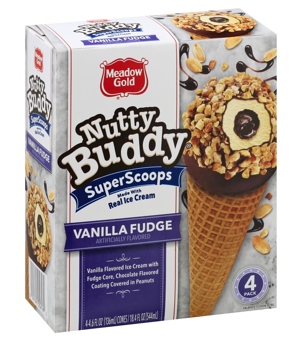 Meadow Gold Nutty Buddy Super Scoops Fudge Ice Cream Cones, Vanilla (4.6 fl oz, 4 ct)