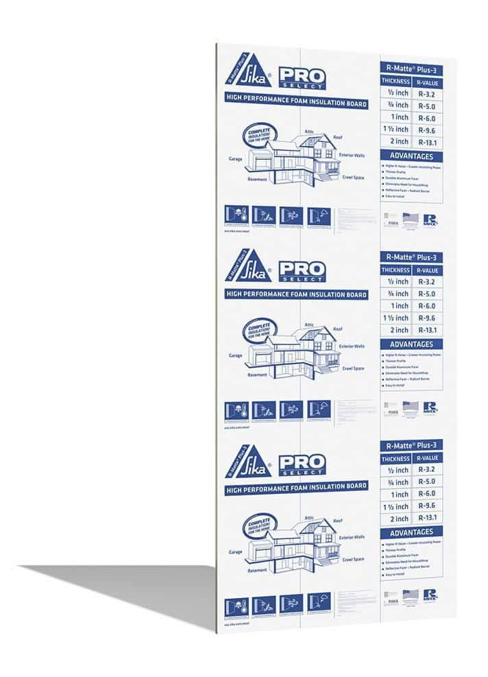 Sika Pro Select R-Matte Plus 3 R 3.2 Iso Rigid Foam Board Insulation, 0.5x48 in x 8 ft