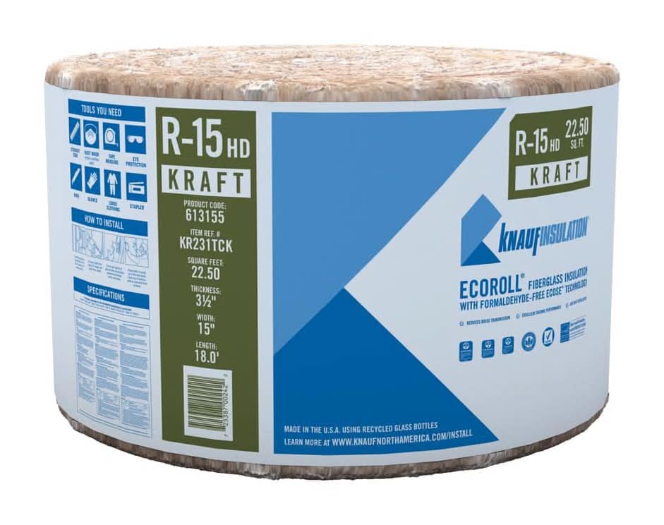 Knauf Insulation R-15 Ecoroll Kraft Faced Fiberglass Roll High Density, 18 ft x 3.5x15 in