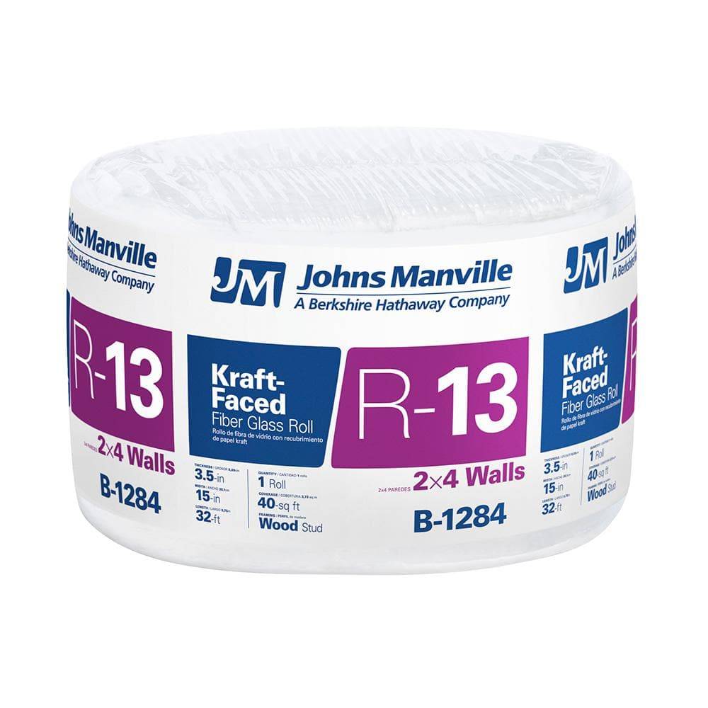 Johns Manville R-13 Kraft Faced Fiberglass Insulation Roll, 15 In X 32 Ft