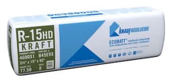 Knauf Insulation R-15 Ecobatt Kraft Faced Fiberglass Batt High Density, 15x93x3 1/2 in