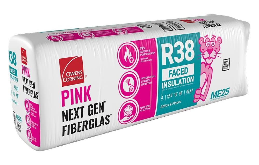 Owens Corning Pink Next Gen R38 Faced Fiberglass Insulation Batts, 16X48 In (8 ct)