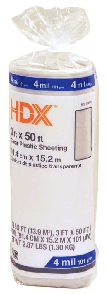 HDX Clear 4 Mil Plastic Sheeting, 3x50 ft (2.87 lbs)