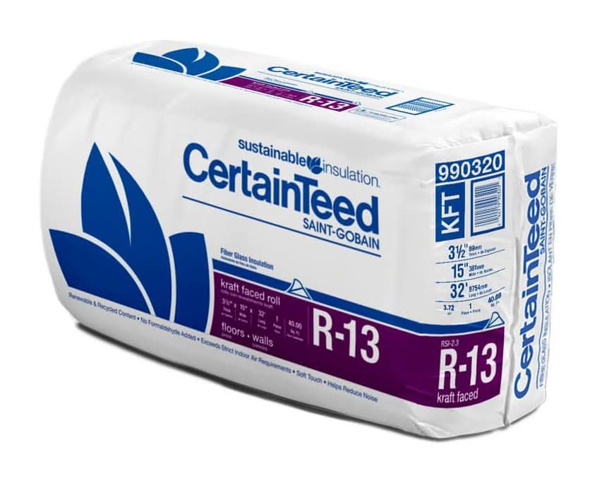CertainTeed Saint Gobain R-13 Kraft Faced Fibreglass Insulation Roll, 3.5x15x384 in