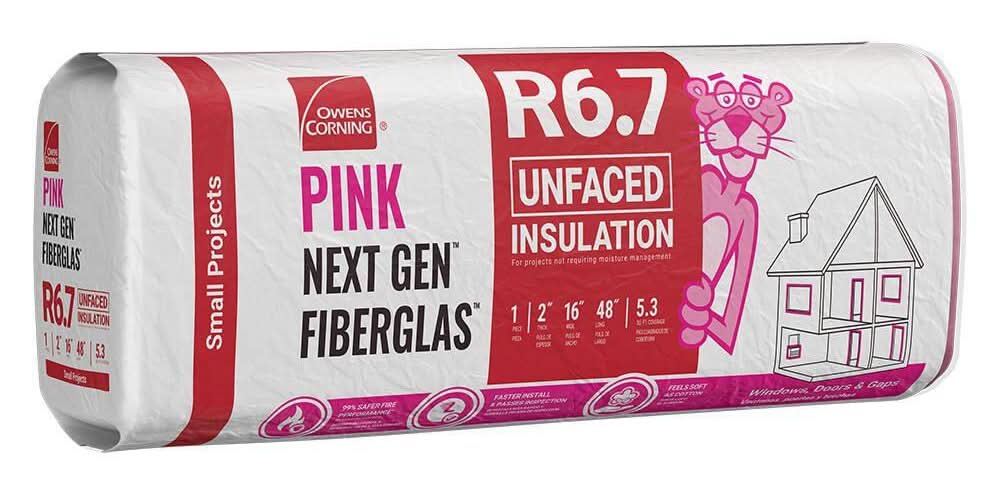 Owens Corning R- 6.7 Next Gen Fiberglas Unfaced Fiberglass Insulation Roll, 48x16x2 in, Pink