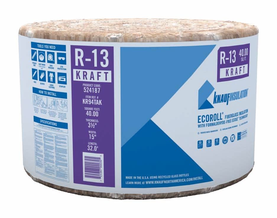 Knauf Insulation R-19 Ecoroll Kraft Faced Fiber Glass Roll, 6.25x15in x 39.2ft
