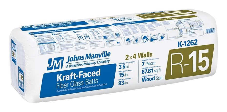 Johns Manville R-15 Kraft Faced Fiberglass Insulation Batt, 3.5x15x93 in