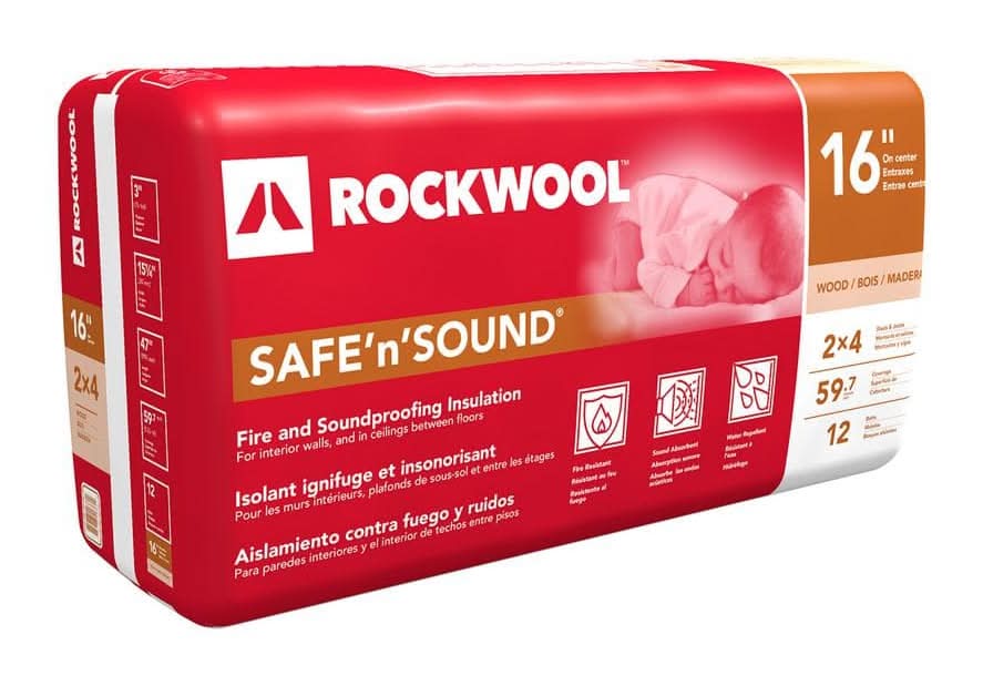 ROCKWOOL Safe 'N' Sound 3 In. X 15-1/4 In. X 47 In. Soundproofing and Fire Resistant Stone Wool Insulation Batt, 59.7 Sq. Ft, 16 Inches (12 ct)
