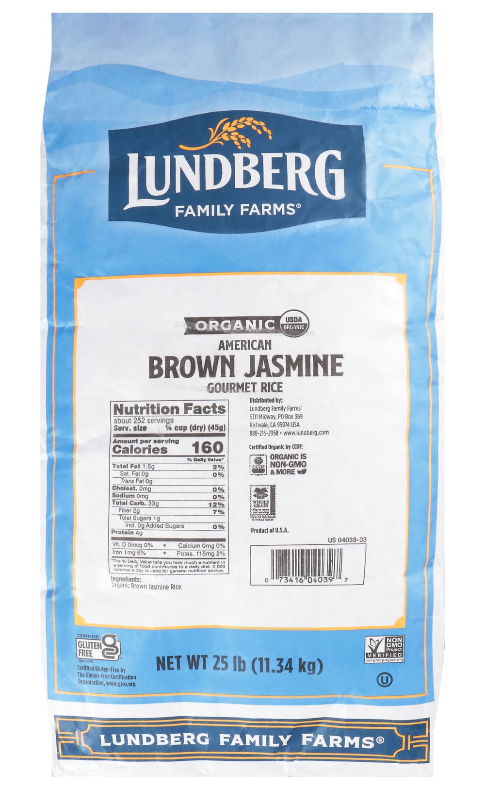 Lundberg Organic American Brown Jasmine Gourmet Rice (25 lbs)