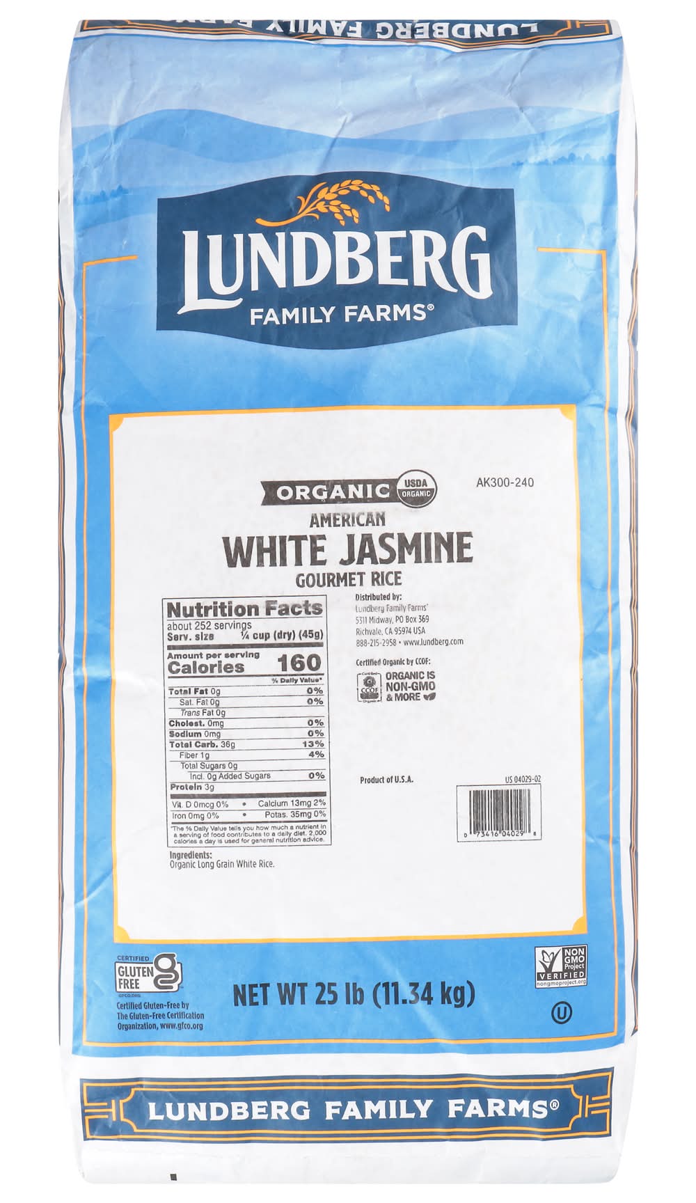 Lundberg American White Jasmine Organic Gourmet Rice (25 lbs)