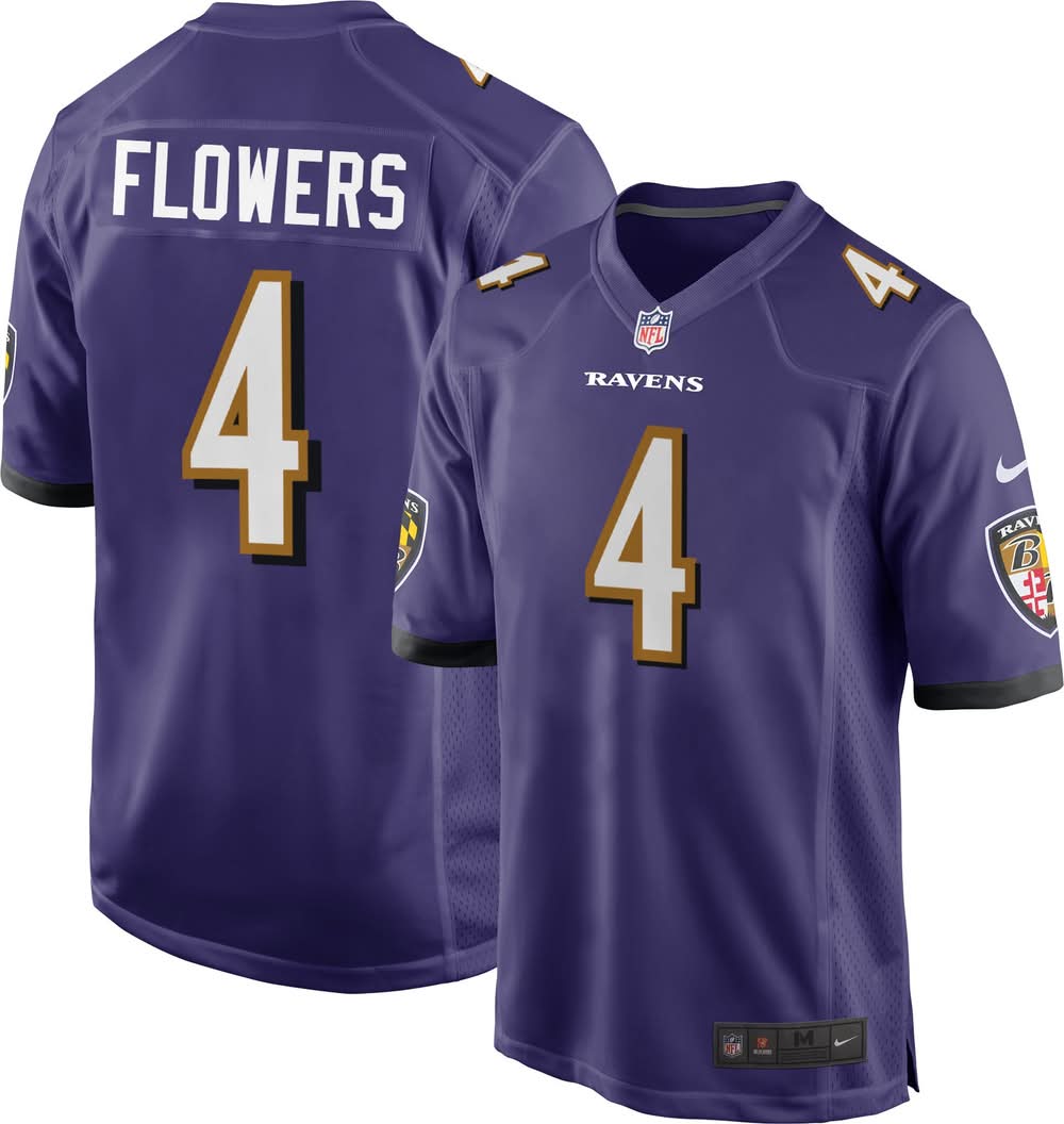 Nike Zay Flowers Baltimore Ravens Game Football Jersey, Men, XL, Purple