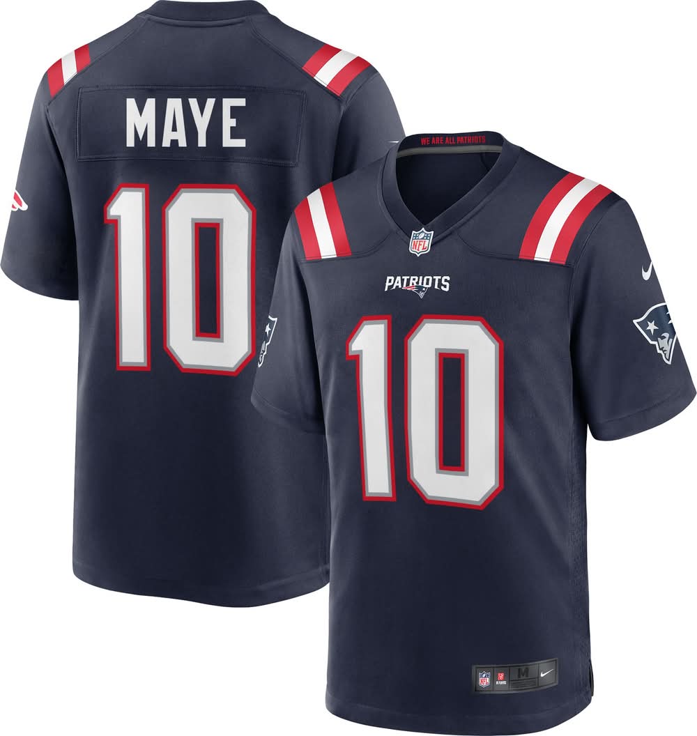 Nike New England Patriots Drake Maye Game Jersey #10, Men, XXL, Navy