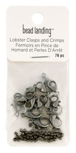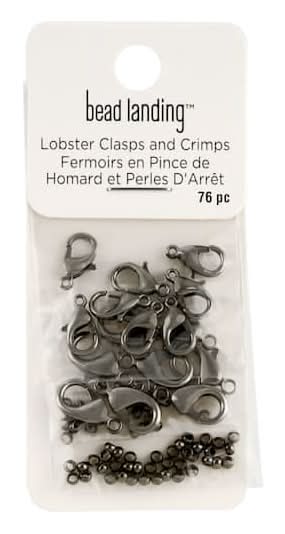 Bead Landing Lobster Clasps & Crimps, 12 mm-15 mm, Gunmetal (76 ct)