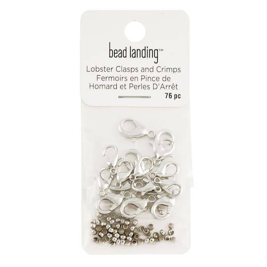 Bead Landing Lobster Clasps & Crimps, 12mm-15mm, Rhodium (76 ct)