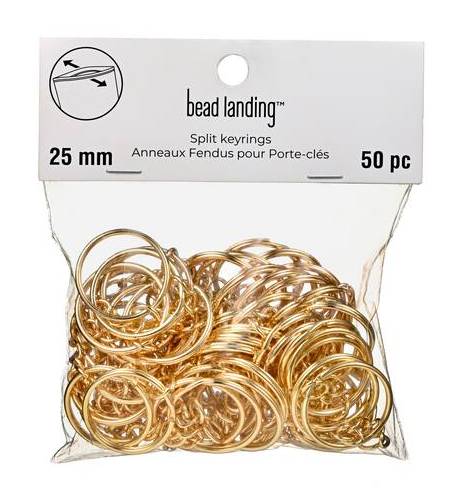 Bead Landing Split Key Rings, 25 mm, Gold (50 ct)