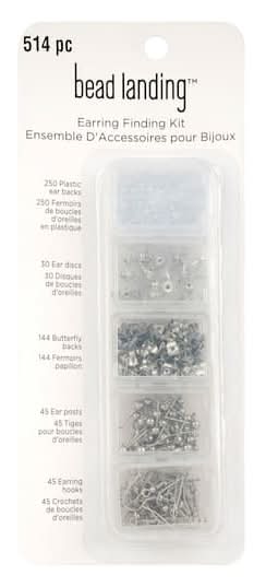 Bead Landing Earring Finding Kit, Rhodium (514 ct)