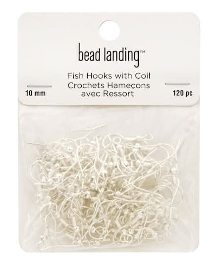 Bead Landing Fish Hooks With Coil For Earrings, Silver (120 ct)