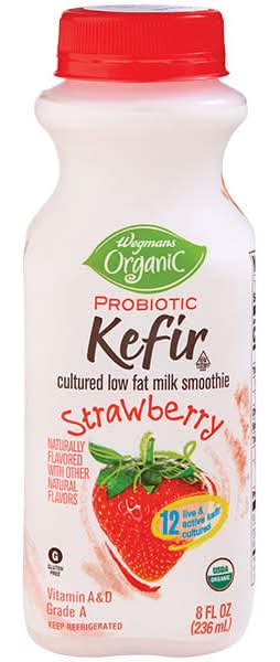 Wegmans Organic Probiotic Kefir Cultured Low Fat Milk Smoothie, Strawberry (8 fl oz)