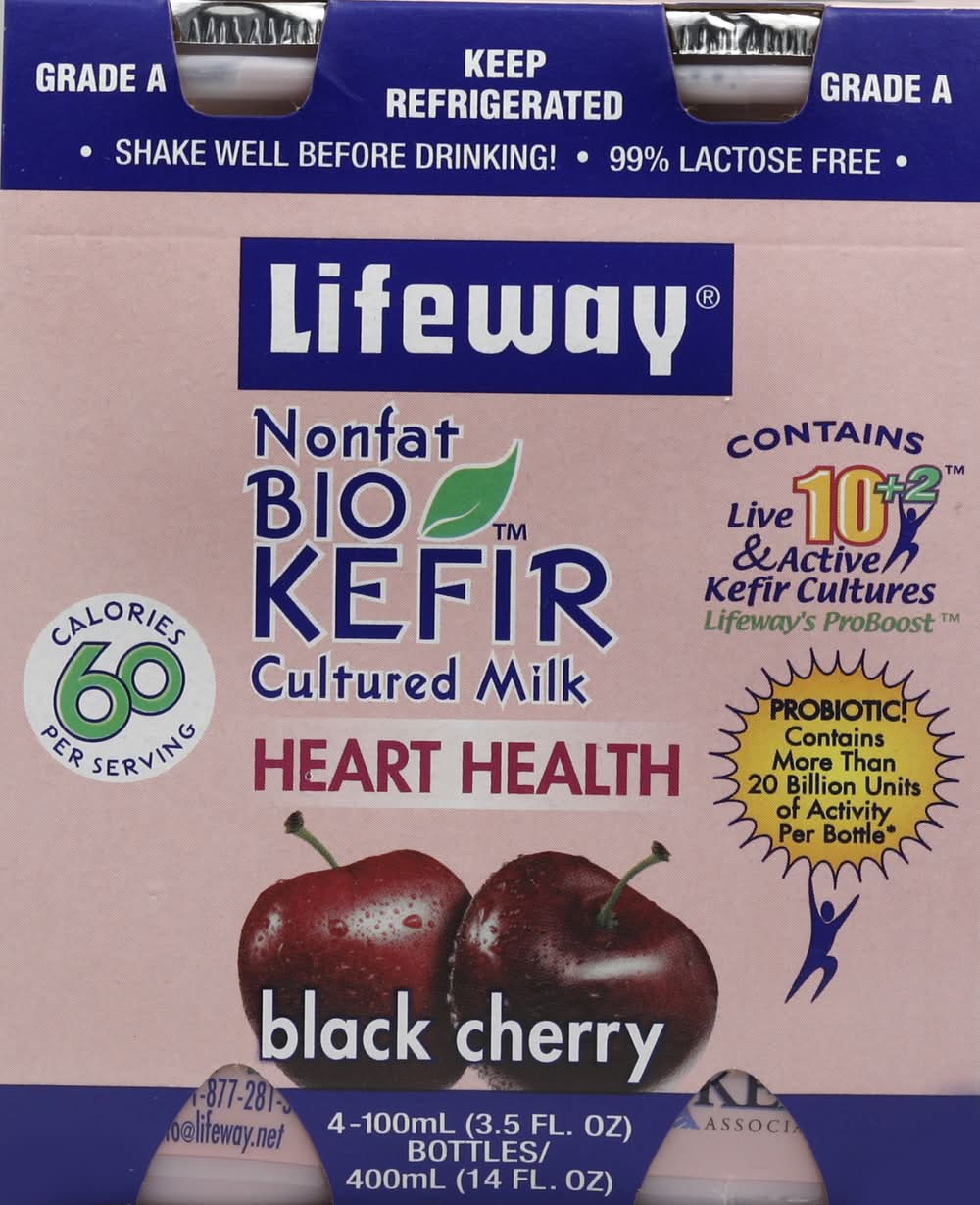 Lifeway Nonfat Biokefir Cultured Milk, Black Cherry (4 x 3.5 fl oz)