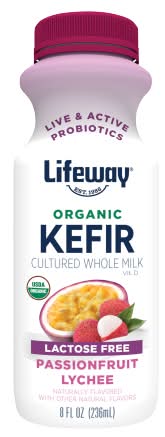 Lifeway Organic Lactose Free Cultured Whole Milk Kefir, Passionfruit Lychee (8 fl oz)