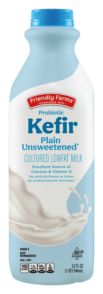 Friendly Farms Probiotic Kefir Plain Unsweetened Cultured Lowfat Milk (32 fl oz)