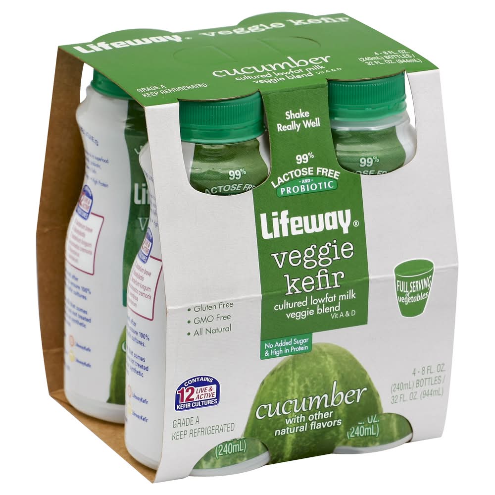 Lifeway Veggie Kefir Low Fat Milk, Cucumber (4 x 8 fl oz)