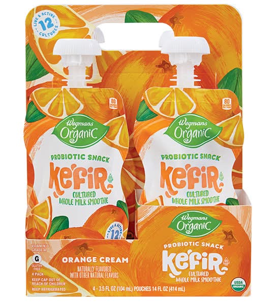Wegmans Probiotic Snack Kefir Cultured Whole Milk Smoothie, Orange Cream (14 fl oz, 4 ct)
