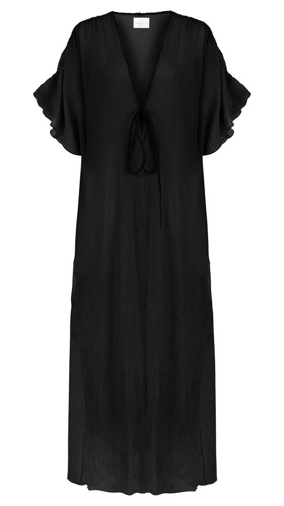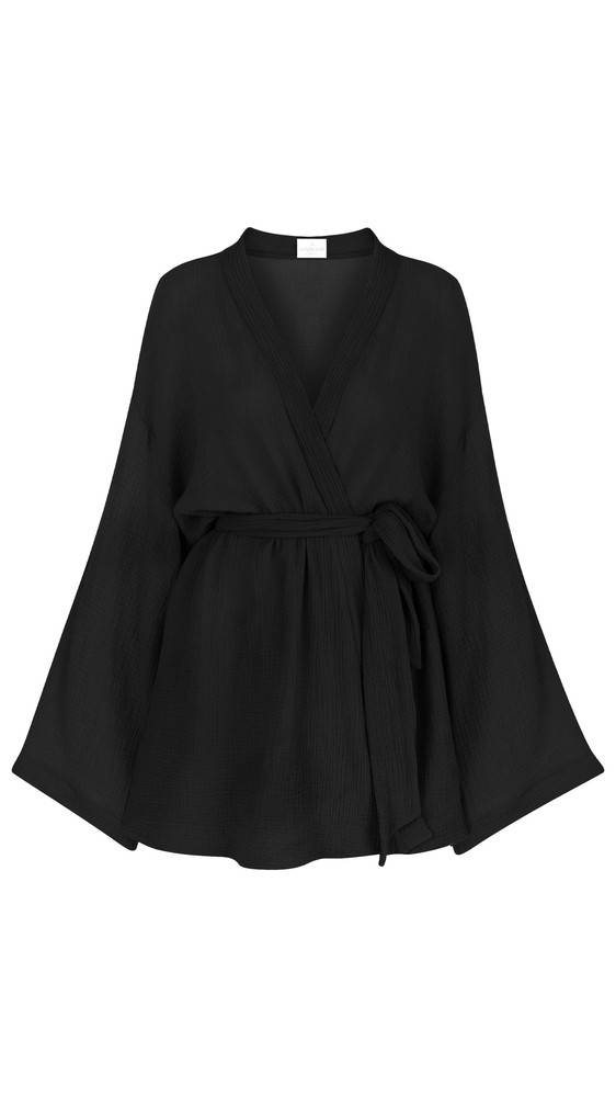 The Handloom Luna Kimono Wrap Dress - Black