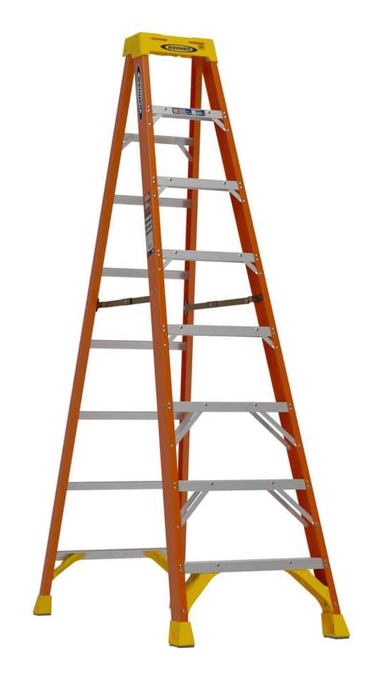 Werner 8 Ft. Fiberglass Step Ladder With Yellow Top