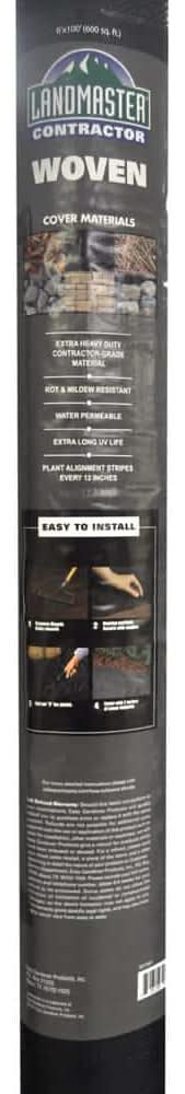 Landmaster Woven Contractor Ground Cover Weed Barrier Landscape Fabric, 6x100 ft