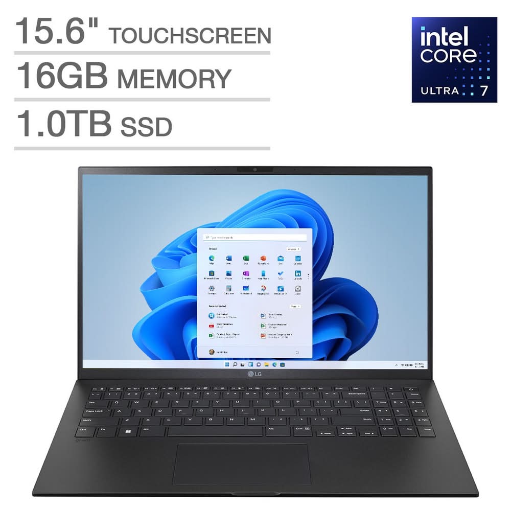 LG Touchscreen Laptop With Intel Core Ultra 7, 15.6 in, Black