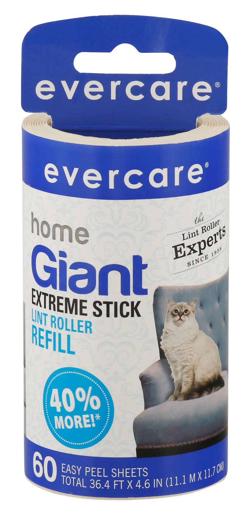 Evercare Home Giant Extreme Stick Lint Roller Refill, 36.4 ft x 4.6 in (6.4 oz, 60 ct)