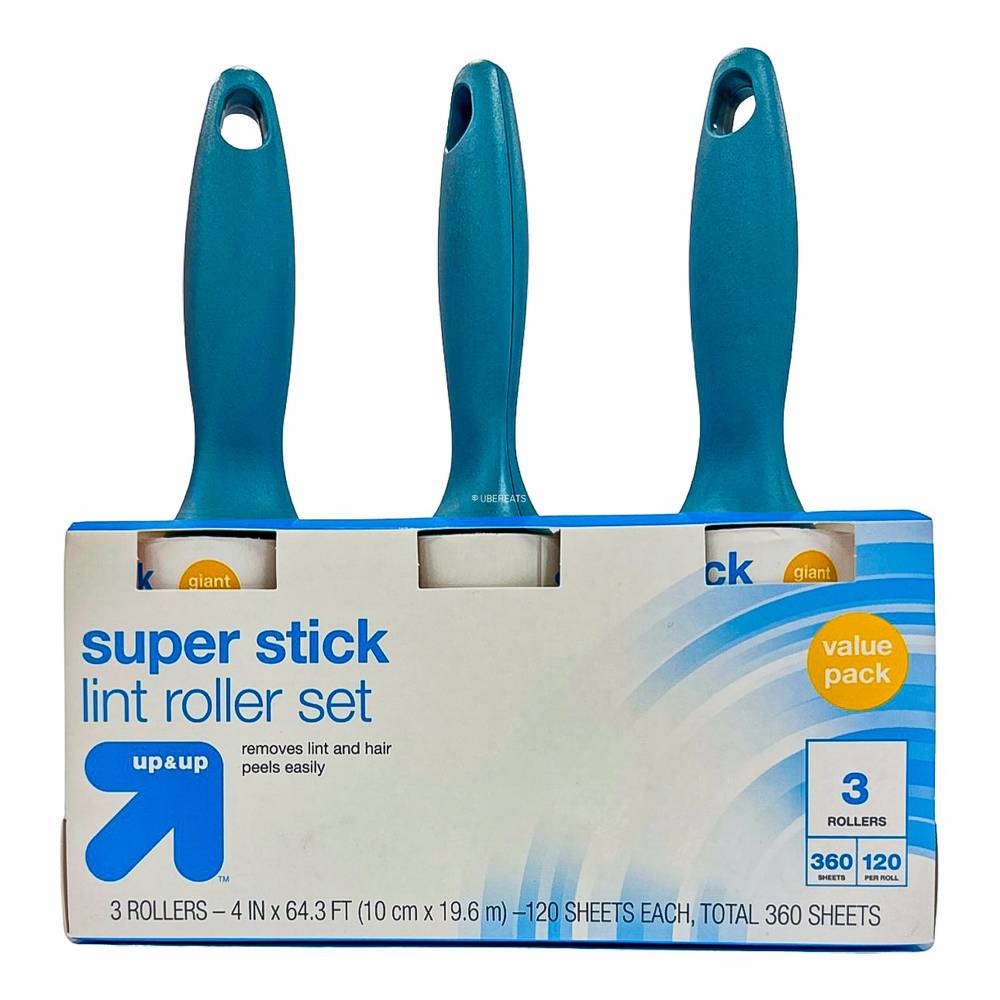 up&up Super Stick Lint Roller Set, 4 in x 64.3 ft (3 x 120 ct)