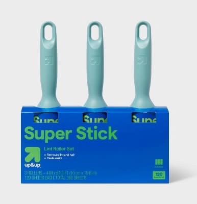 up&up Super Stick Lint Roller Set, 4in x 64.3ft (3 x 120 ct)