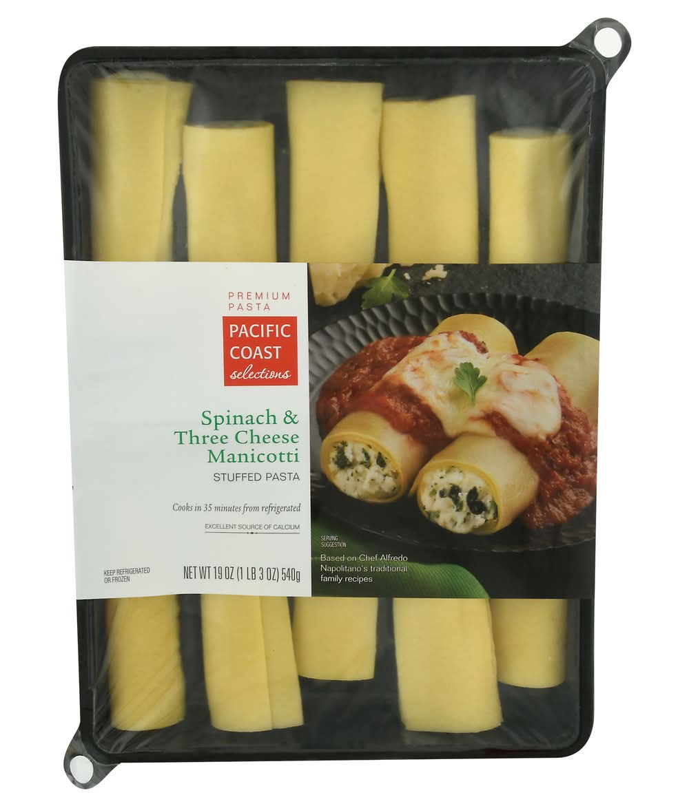 Pacific Coast Selections Spinach & Three Cheese Manicotti Stuffed Pasta (19 oz)