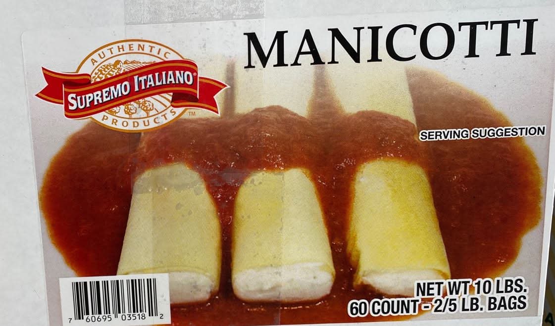 Supremo Italiano Cheese Manicotti (10 lbs, 60 ct)