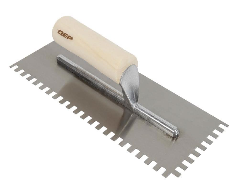 QEP Traditional Carbon Steel Squarenotch Flooring Trowel With Wood Handle