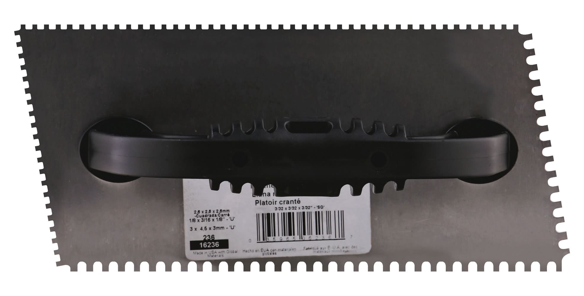 QEP Comfort Grip Stainless Steel Square Notch Flooring Trowel, 1/4x1/4x1/4 in