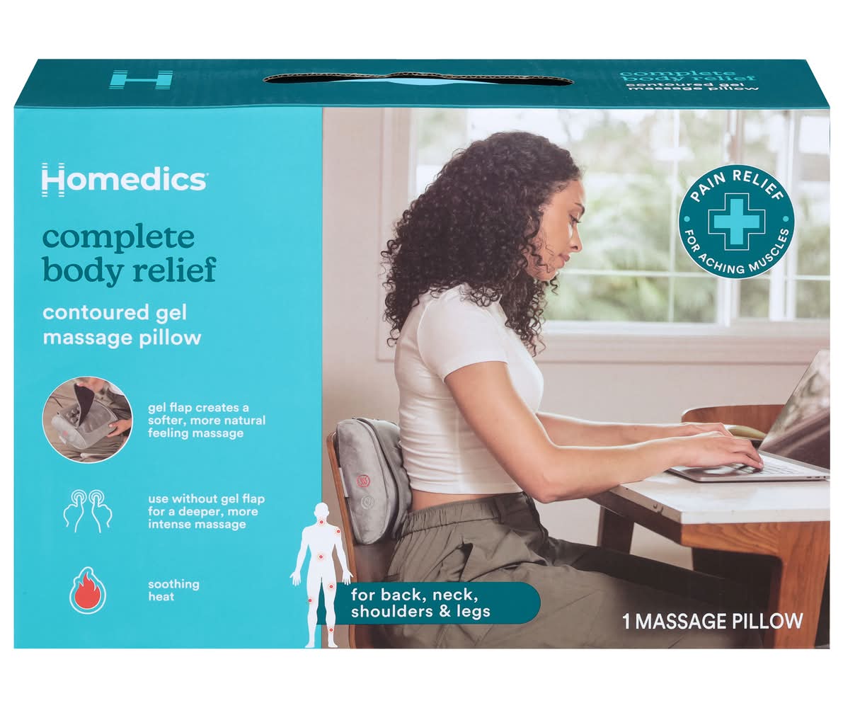 Homedics Complete Body Relief Contoured Gel Massage Pillow, Grey