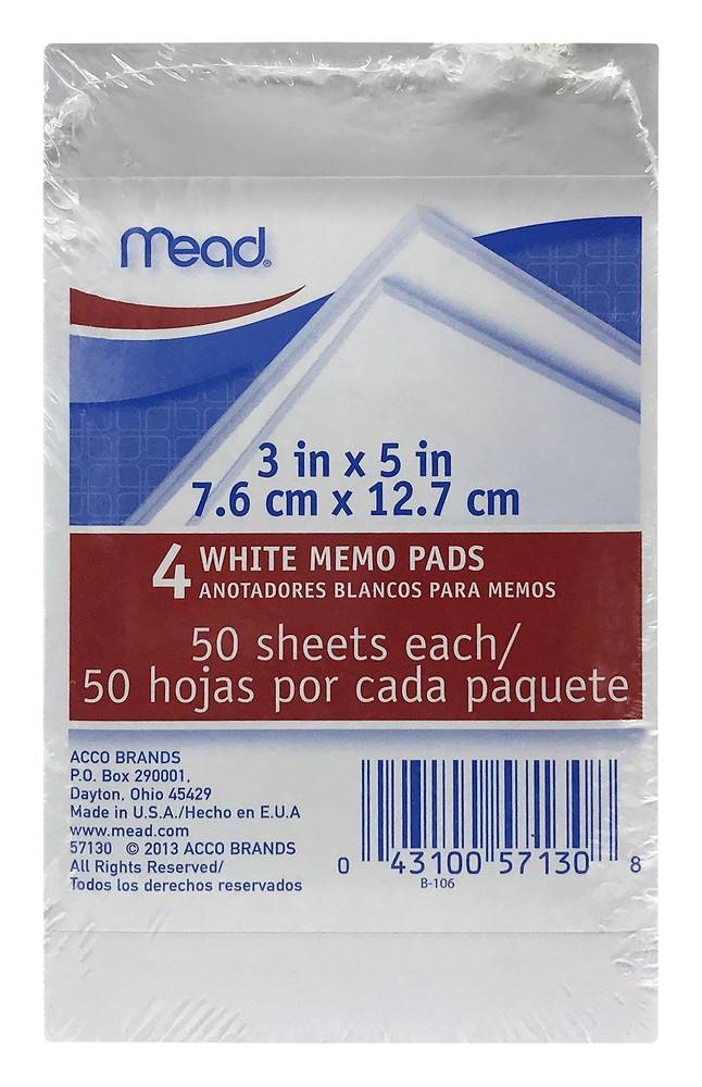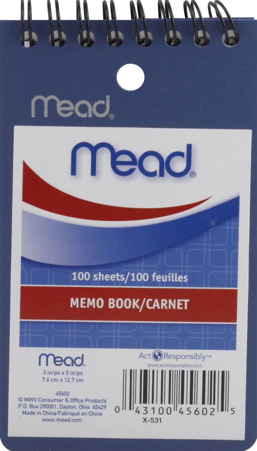 Mead Memo Book Poly Cover 3" X 5" 100 Sheets (3.6 oz)