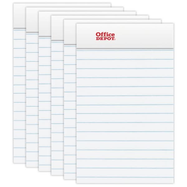 Office Depot College Ruled Mini Writing Pads, 3" x 5", White (6 pack)