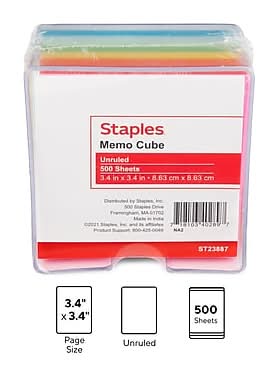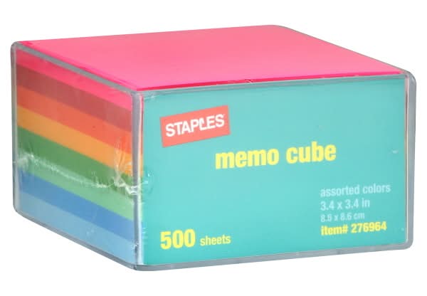 Staples Memo Cube Memo 500 Sheets Pad, Assorted