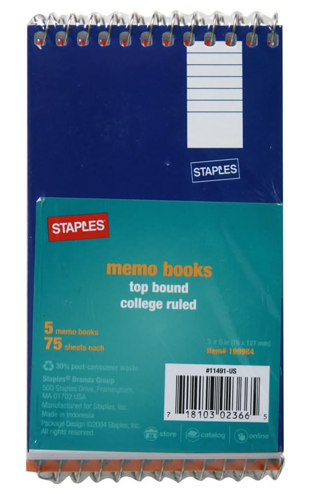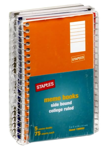 Staples 75 Sheets Memo Pads, Assorted (5 pack)