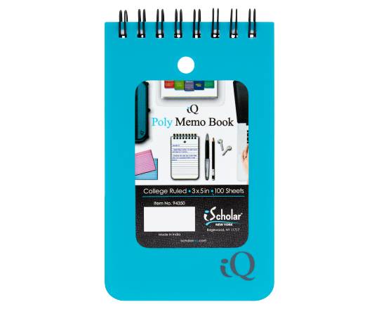 iQ 100 Sheets Poly Memo College Ruled Book, Black,Blue,Green,Red,Silver,White,Grey,Purple,Beige,Pink
