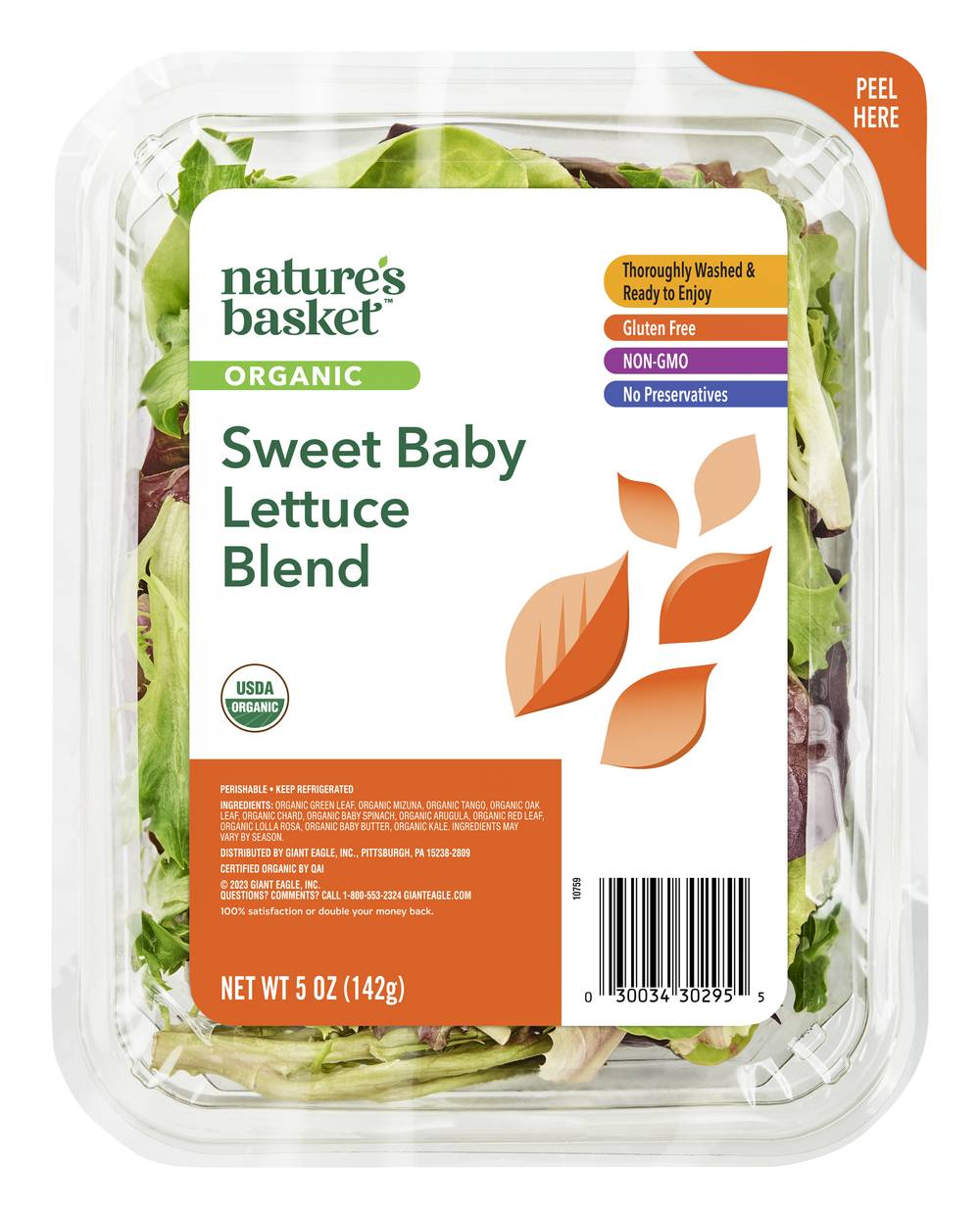 Nature's Basket Organic Sweet Baby Lettuce Blend (5 oz)