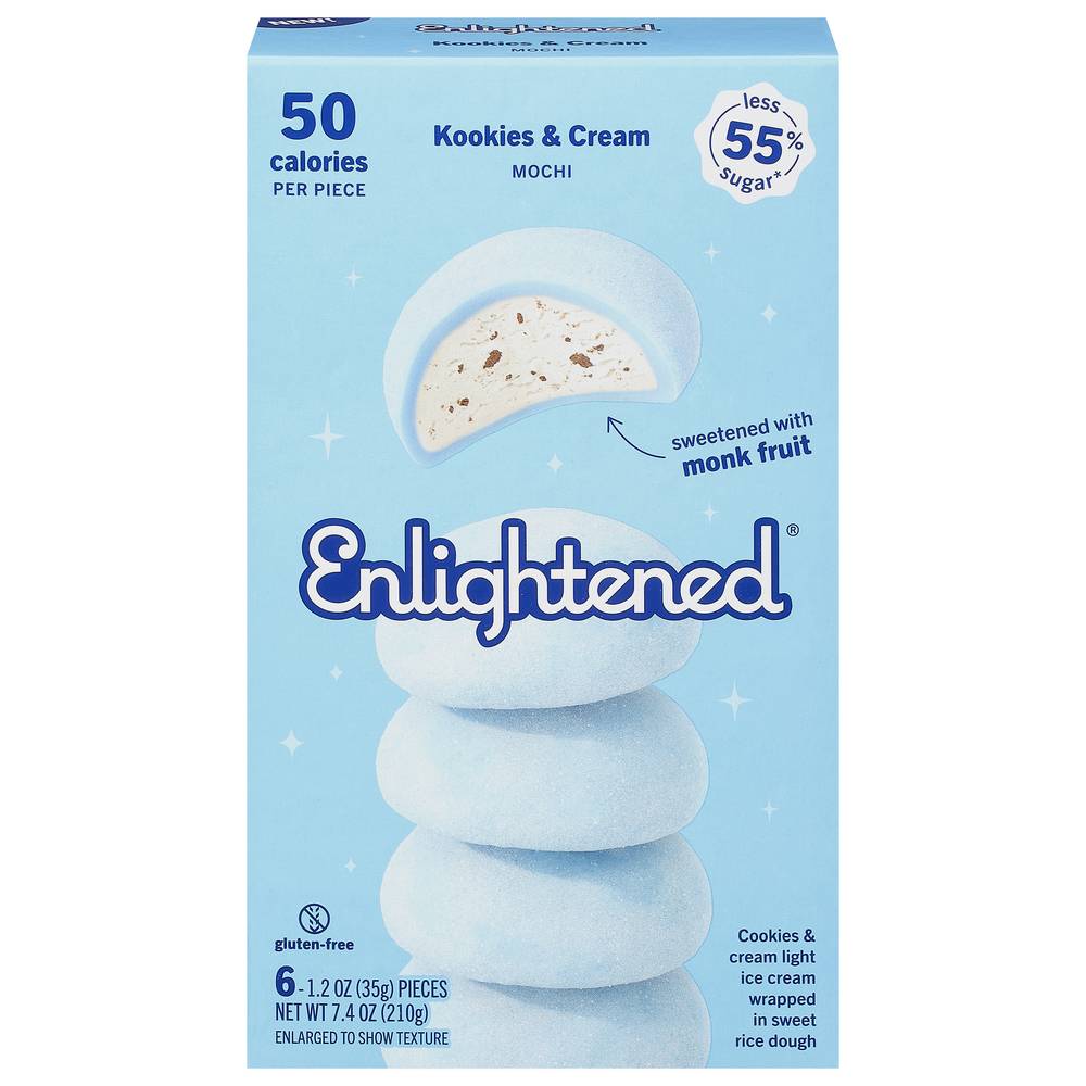 Enlightened Mochi Kookies & Cream Ice Cream, Monk Fruit (1.2 oz, 6 ct)
