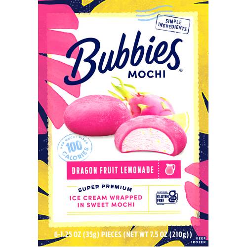 Bubbies Ice Cream Wrapped in Sweet Mochi, Dragon Fruit Lemonade (7.5 oz, 6 ct)