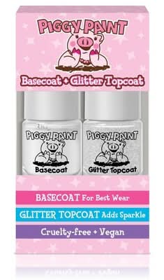 Piggy Paint Non Toxic Nail Polish Basecoat Glitter Topcoat Set For Kids (0.24 fl oz, 2 ct)