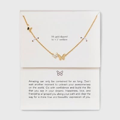 14K Dipped Cubic Zirconia Triple Butterfly Station Necklace, 16x19 in, Gold